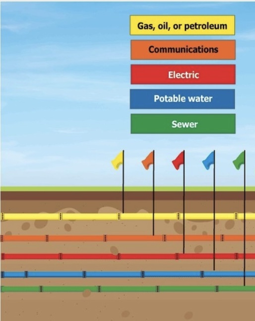 They are usually marked on the ground surface by spray paints or flags with corresponding colors.